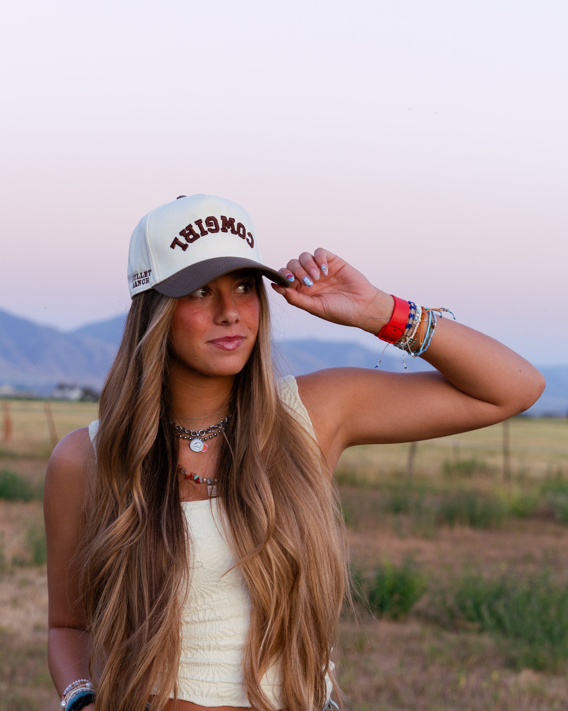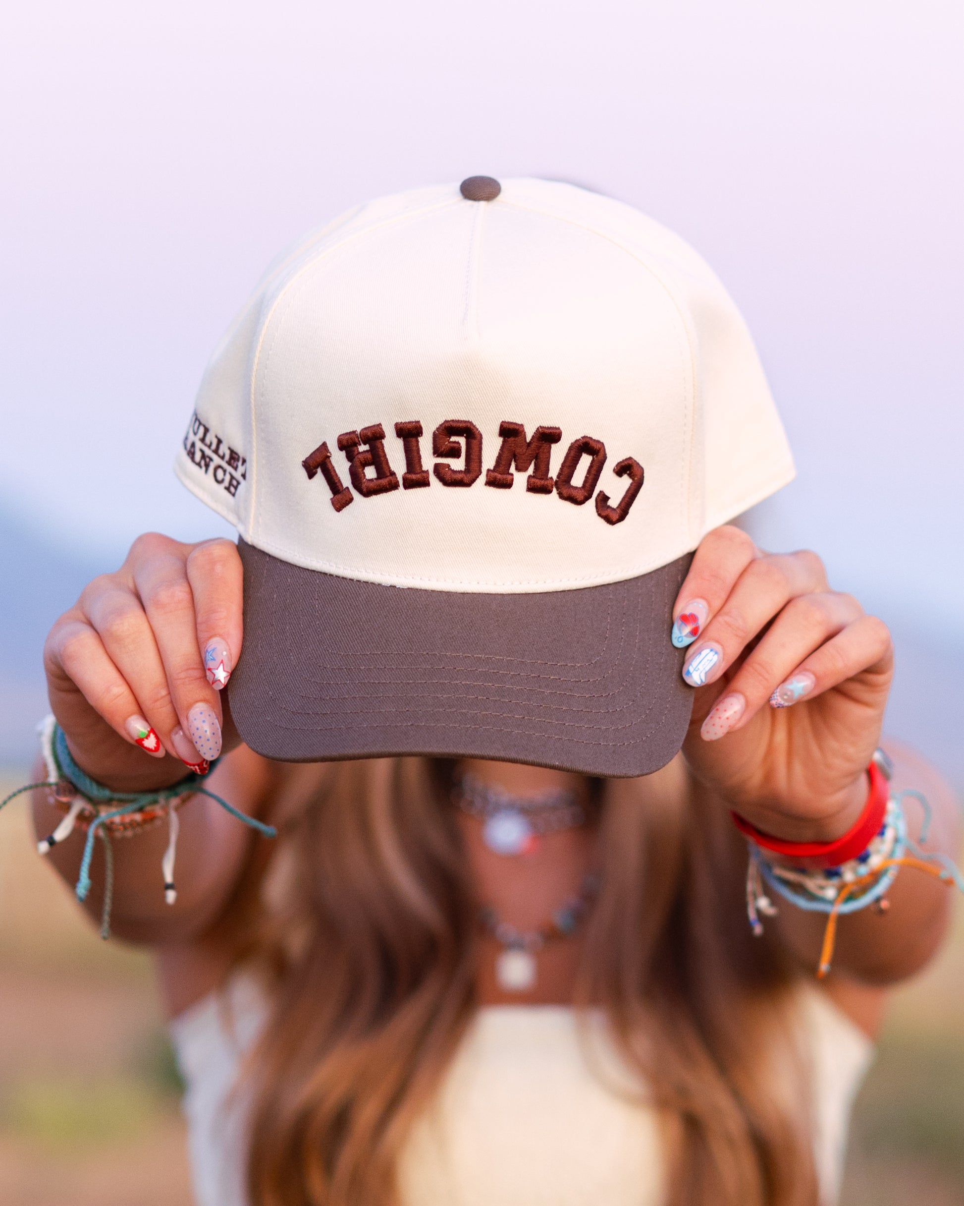 This one’s made to turn heads literally. The Reverse Cowgirl features bold, mirrored “COWGIRL” embroidery on a cream crown with a mocha bill, giving classic Western energy a clever twist. Designed to stand out in selfies, rodeos, or wherever you ride, it’s finished with the Mullet Ranch logo on the side. Bold. Playful. All cowgirl.